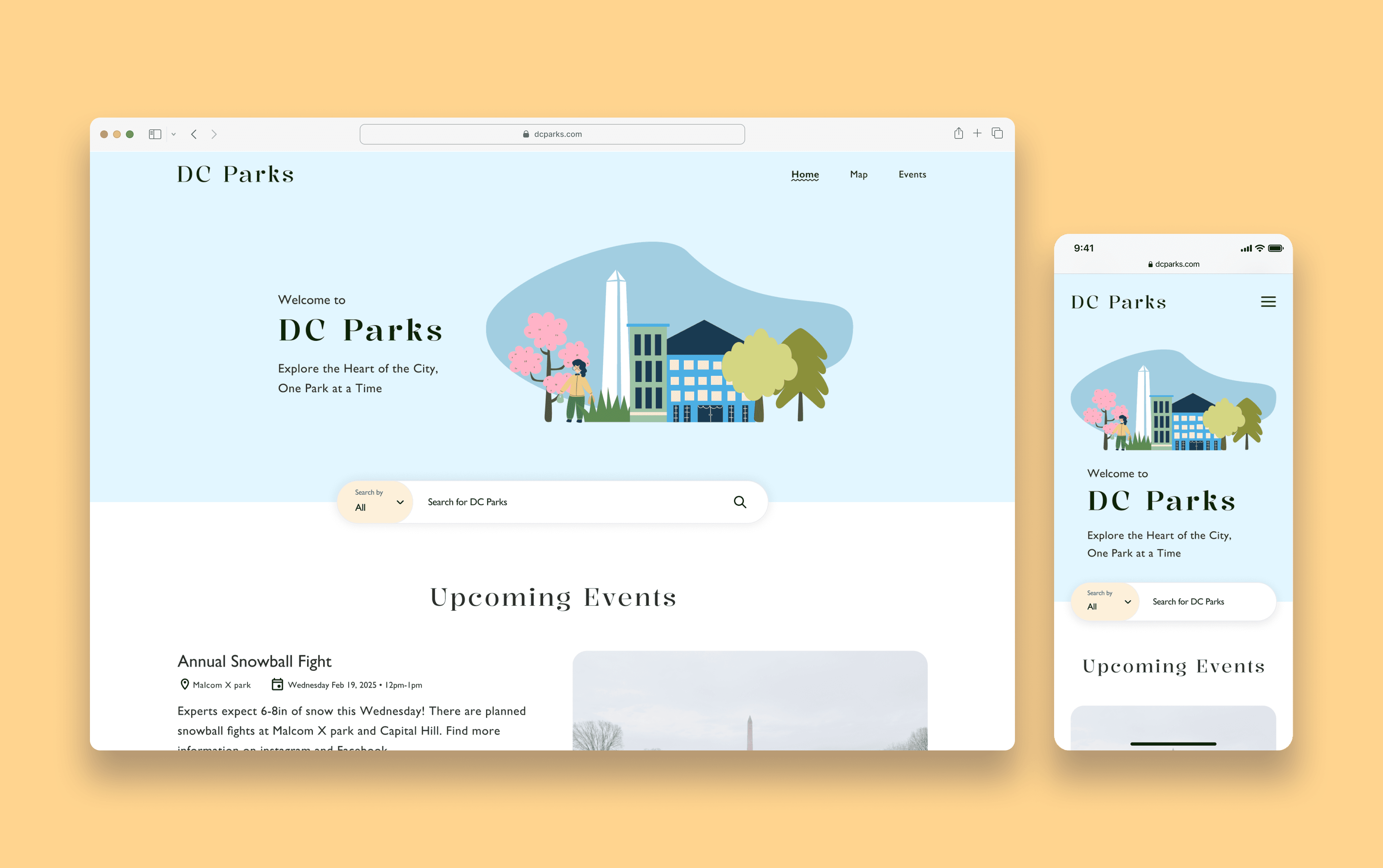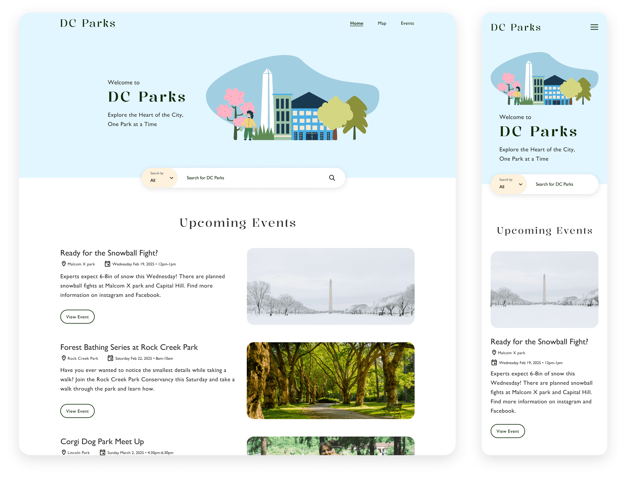 A centralized responsive platform to help residents and visitors in Washington D.C. find park information and events quickly and intuitively.