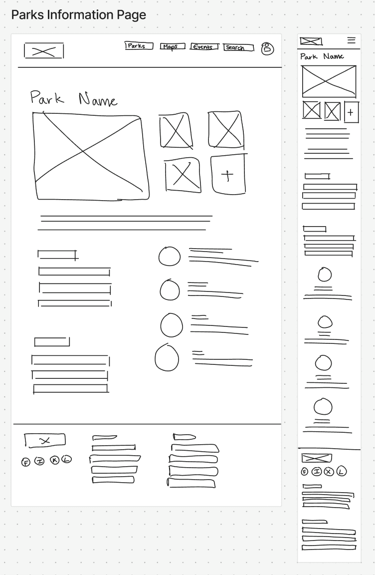 The wireframes evolved through iteration to create a clear, user-centered layout that made essential park information accessible at a glance.