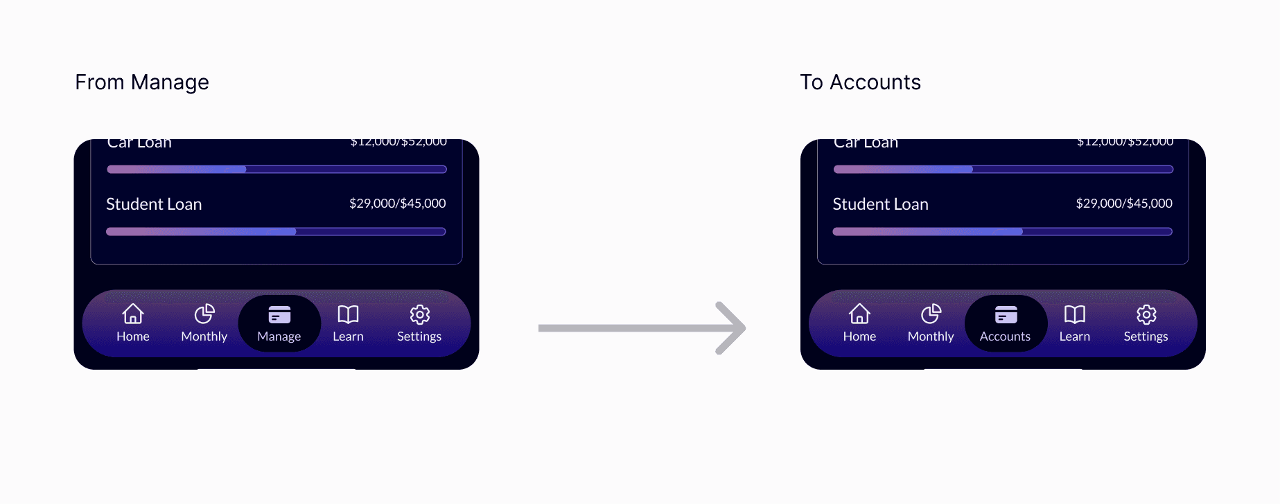 Clarified Navigation Labels from “Manage” to “Accounts”