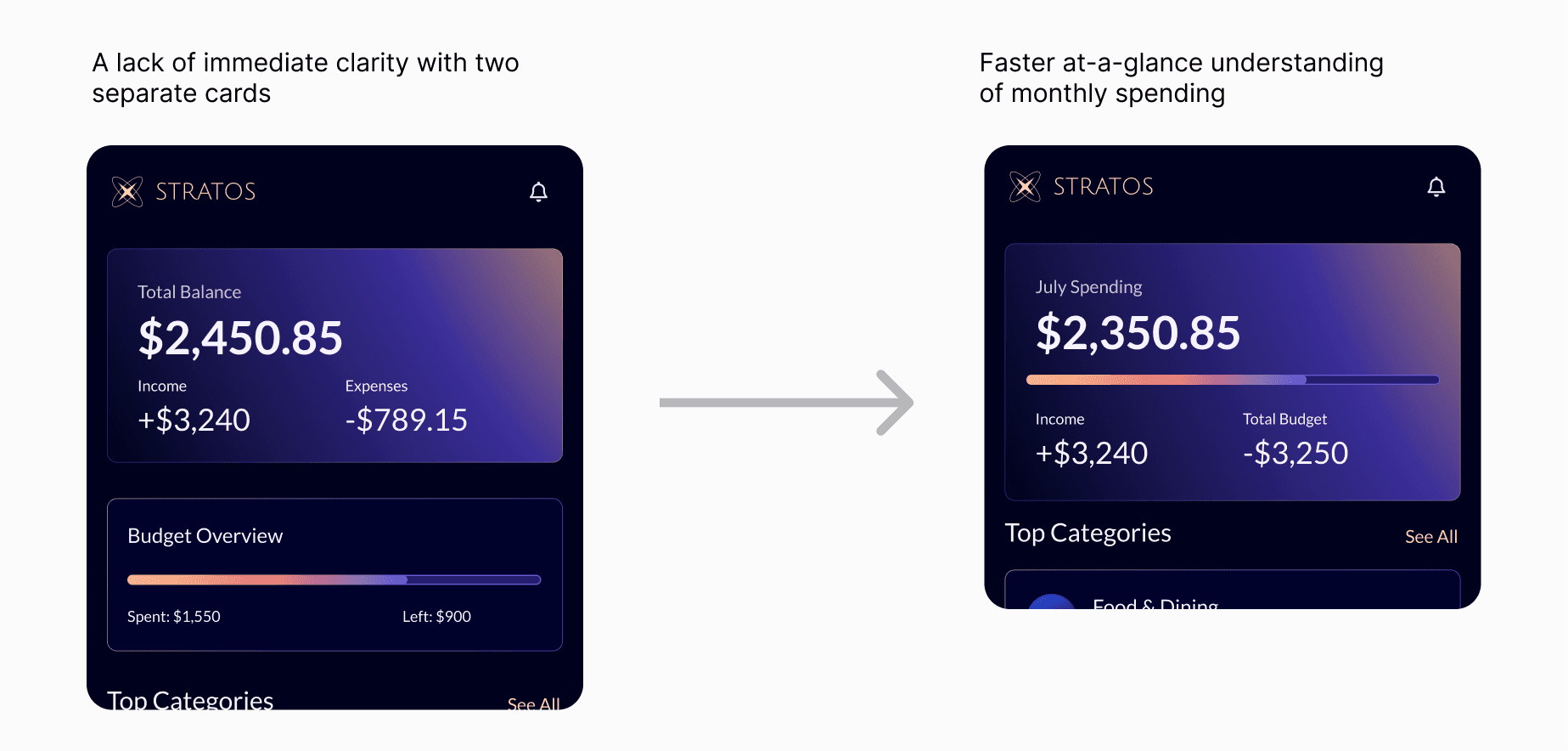Stratos’ UI brings together calm visuals and purposeful structure to make financial management feel approachable and empowering.