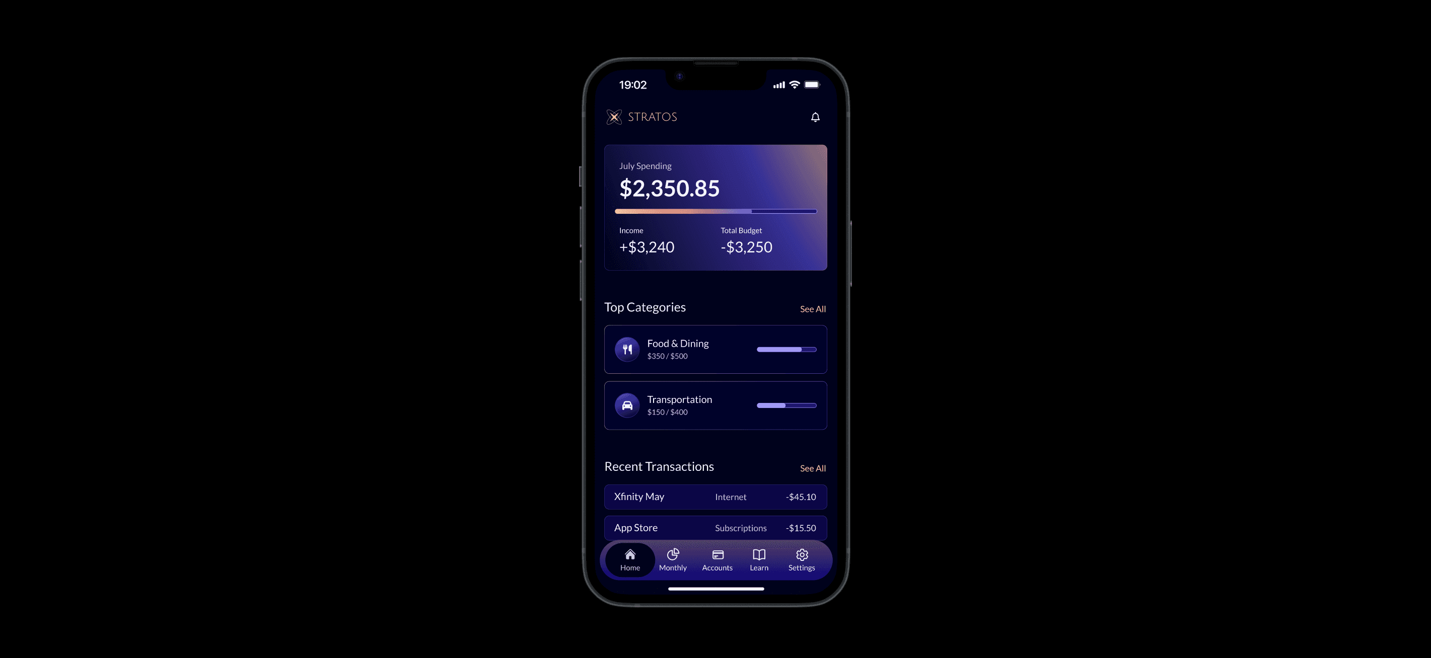 Stratos was created as a response to that vacuum, a personalized budgeting solution designed to make financial management feel less overwhelming and more intuitive.