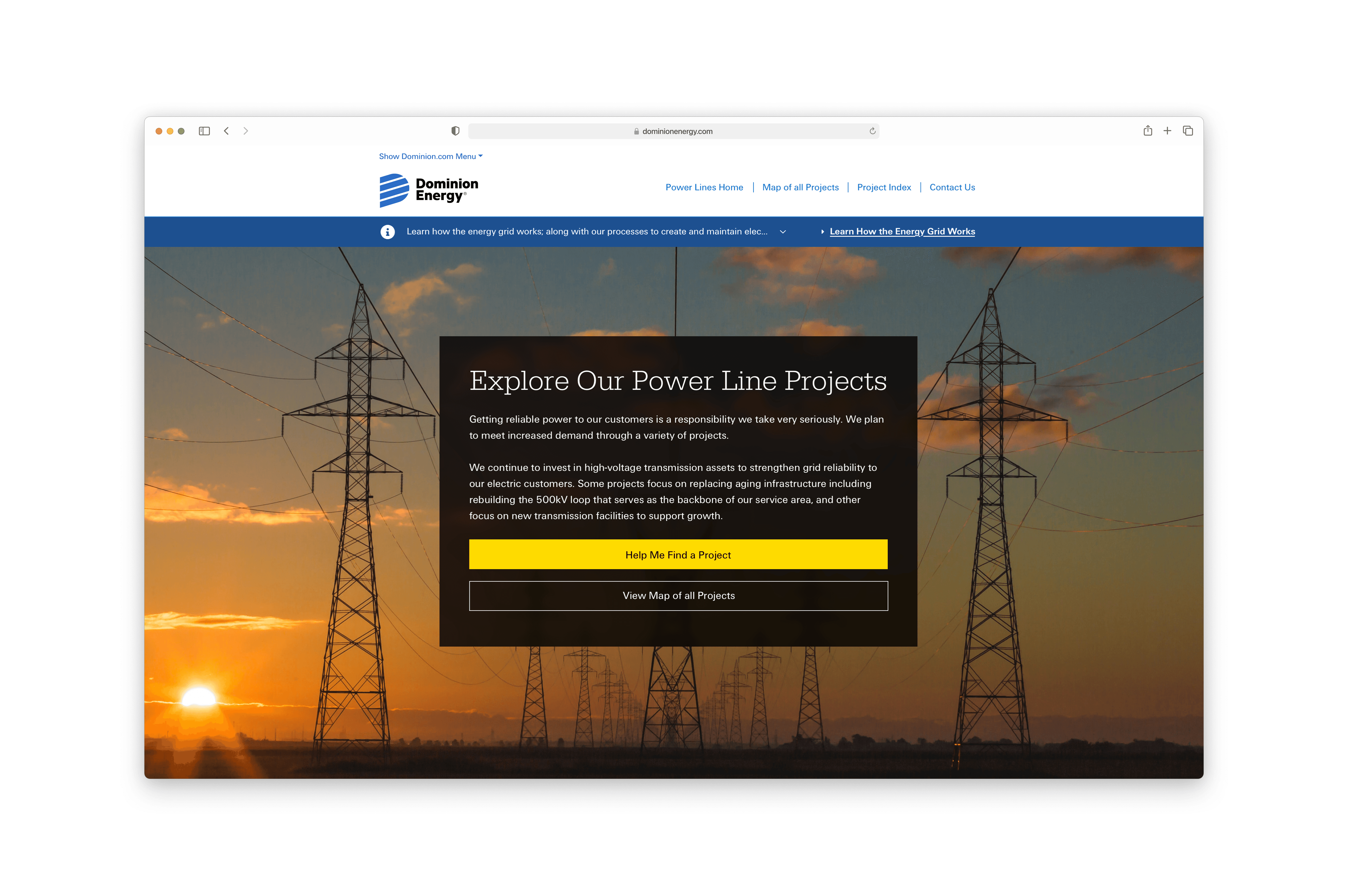 Dominion Energy Powerlines is a microsite that allows residents to understand how construction and maintenance will impact their electric service.
